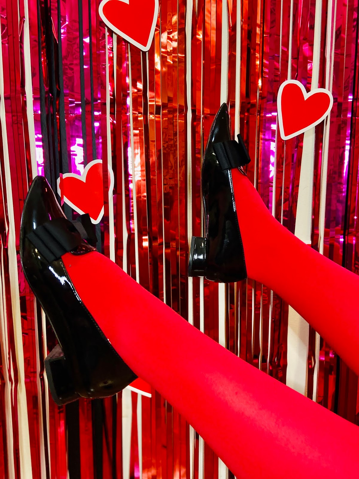 - February 11: Are you in need of some cherry-red tights, friend? Well, look no further! These are from Amazon, so they're super affordable, but even better than that--they're great quality. I've worn them in a couple of V-Day shots already, and I'm pretty sure I could come up with endless outfit combos using them. Check the link for some other fabulous colors by clicking here.